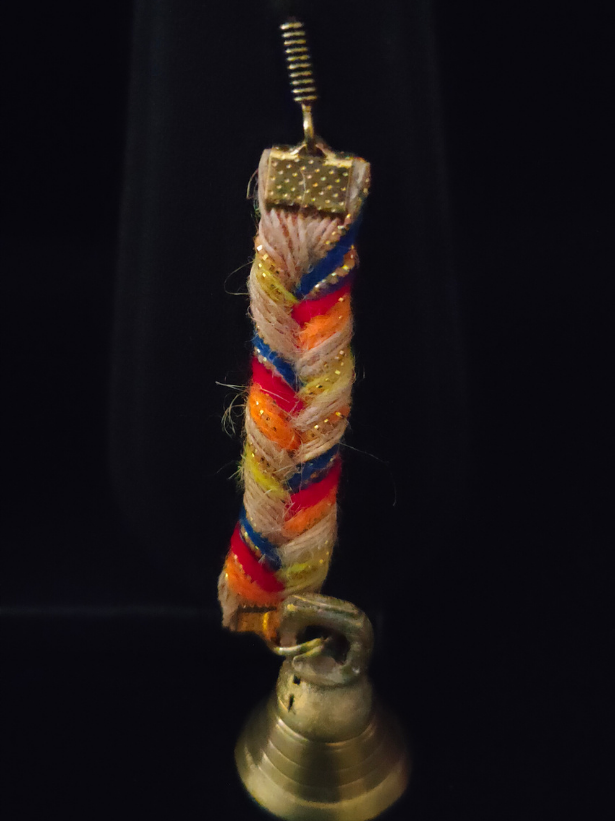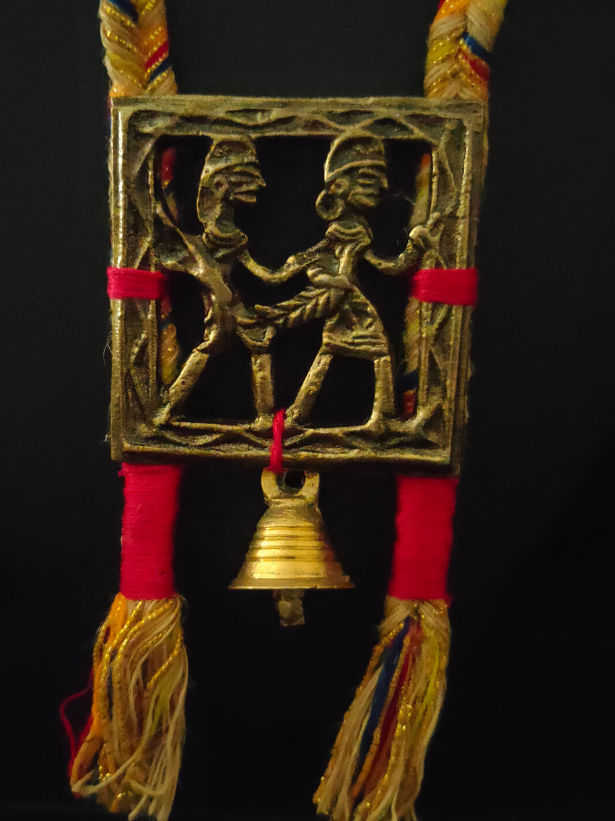 Threaded Fabric Necklace Set with Tribal Motifs Metal Pendant