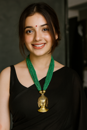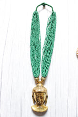 Green Beads Handcrafted Long Buddha Pendant Necklace