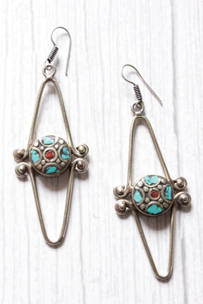 Turquoise Red Coral Silver Finish Tibetan Dangler Earrings