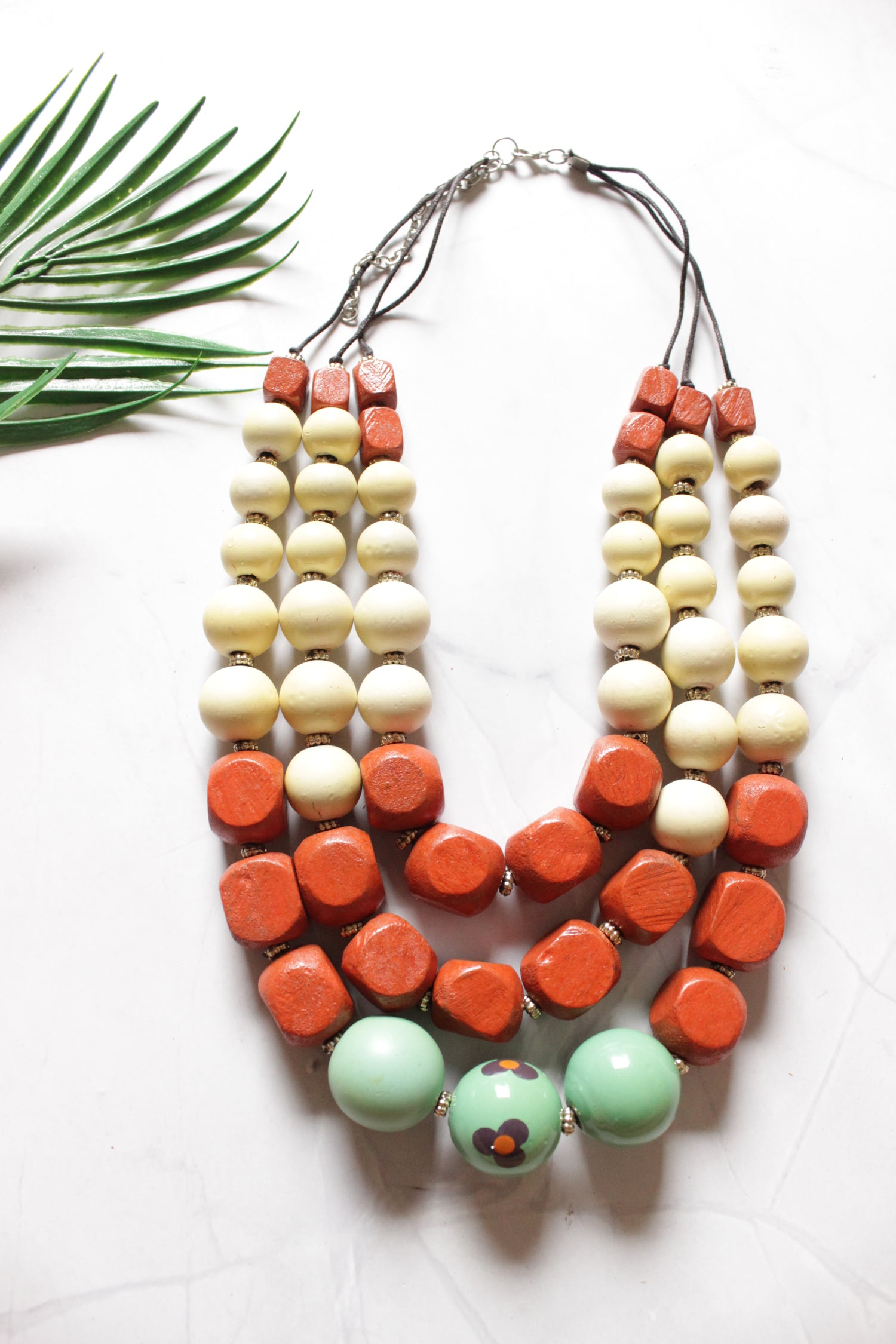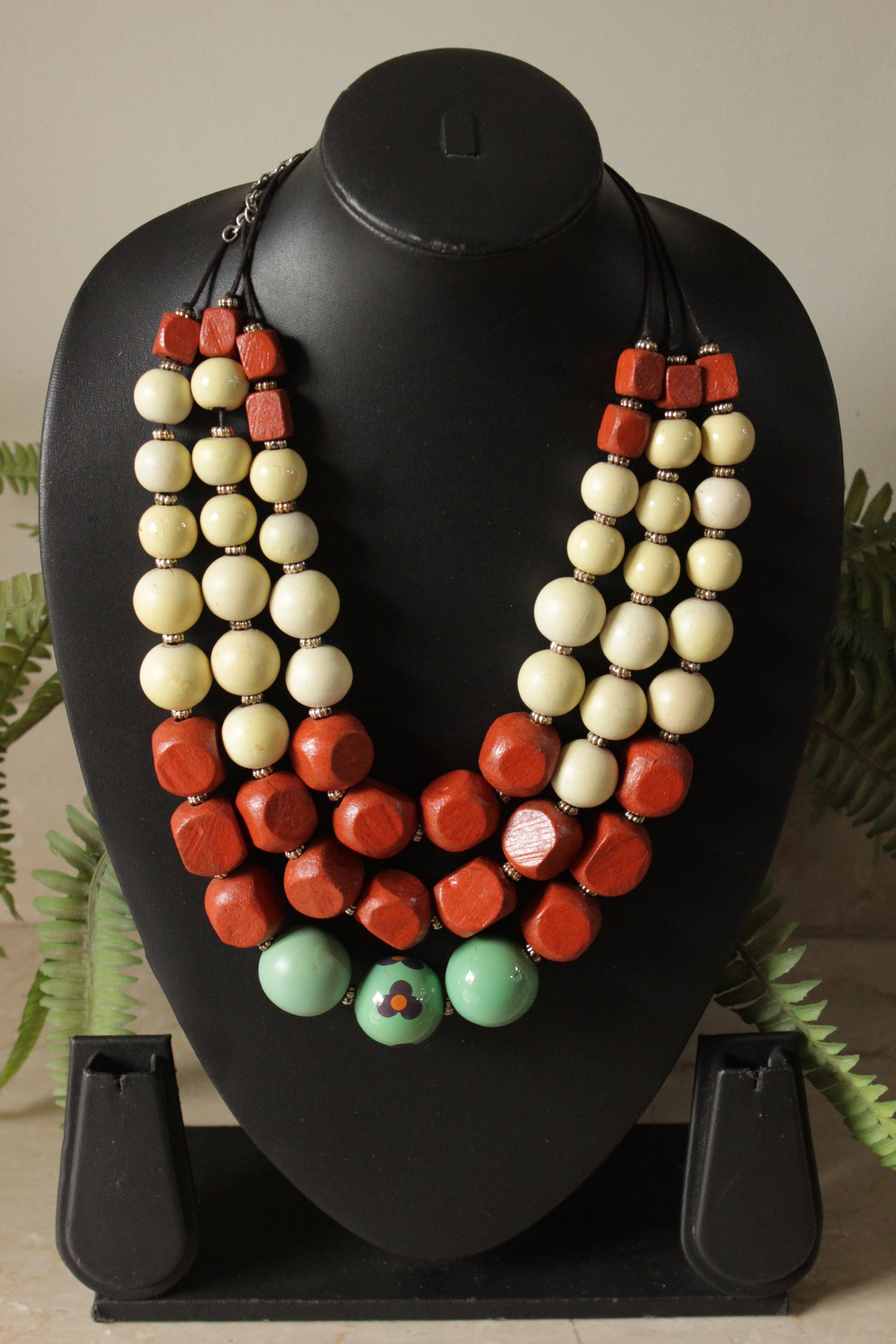 Earthy Shades Wooden Beads 3 Layer Necklace