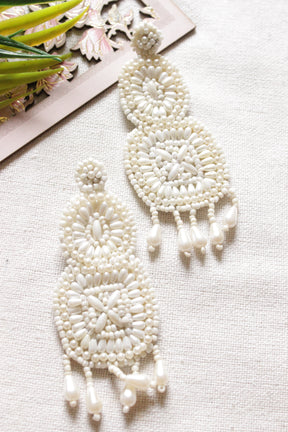 White Acrylic Beads Long Beaded Earrings