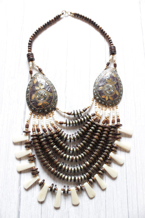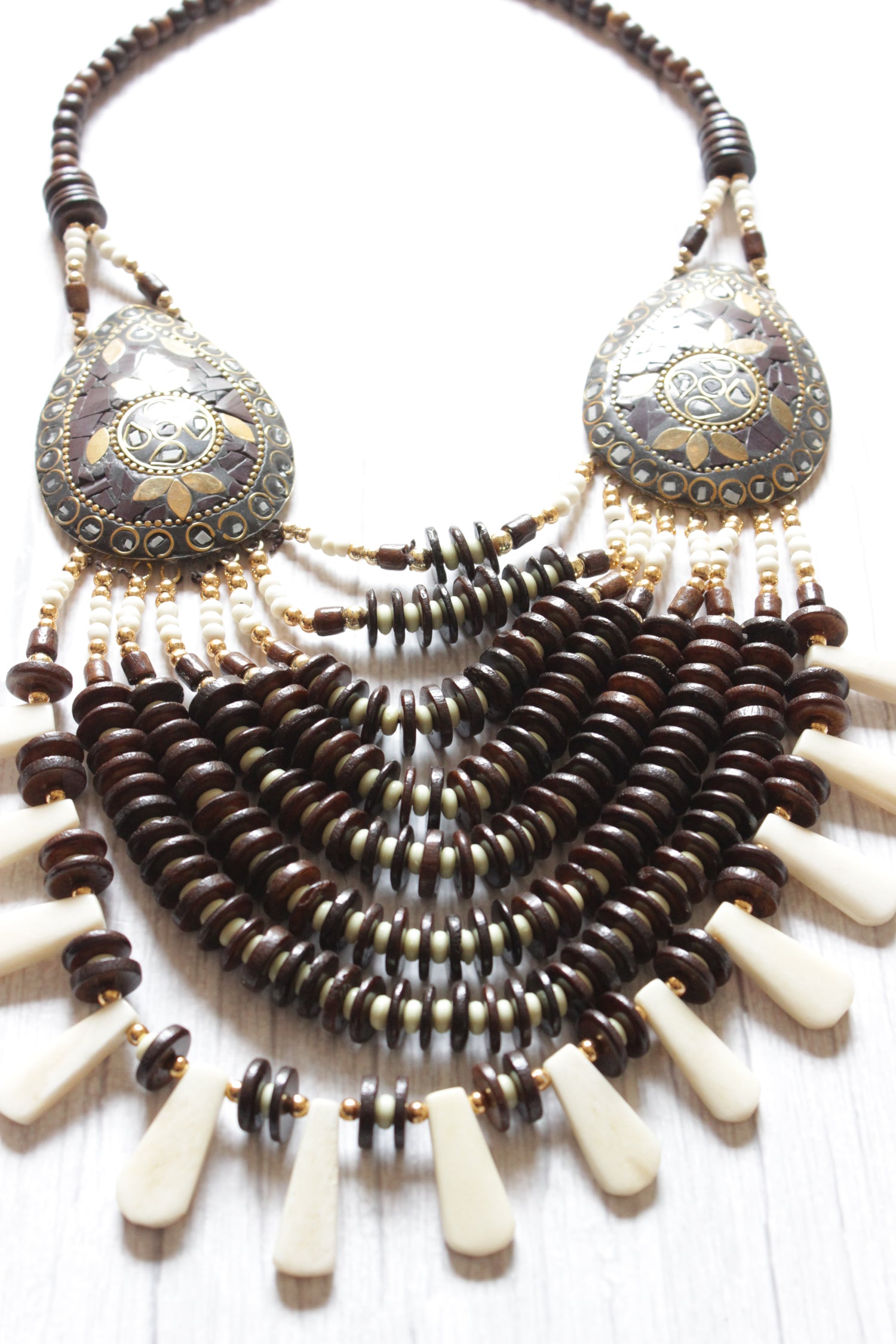 Elegant White and Brown Beads Handcrafted Statement African Tribal Necklace